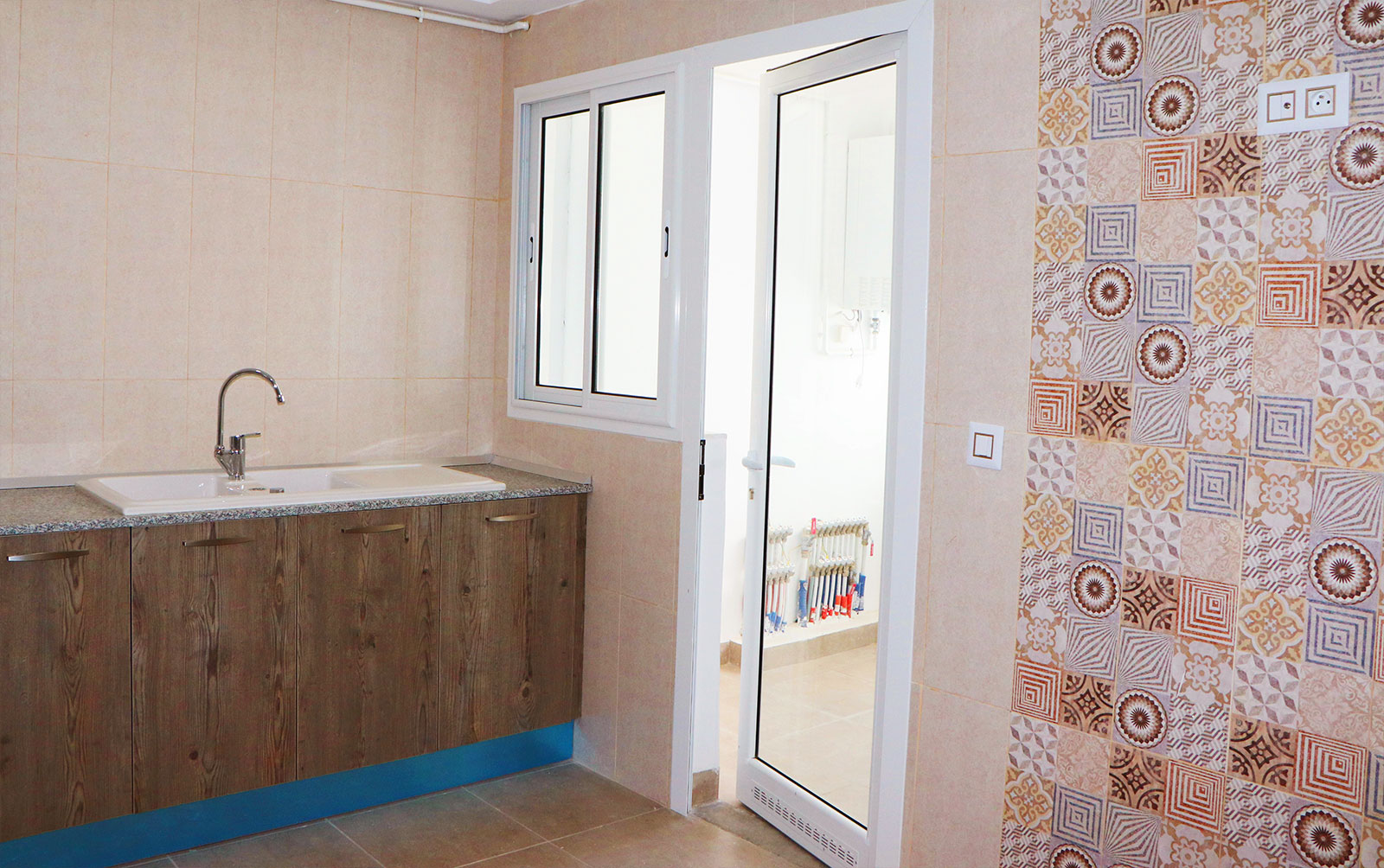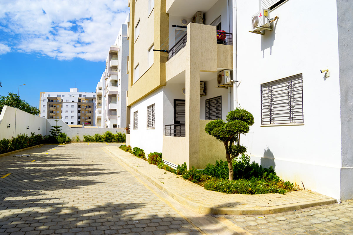 La résidence de standing se compose d’un RDC, de 7 étages, un parking souterrain et un autre aérien.